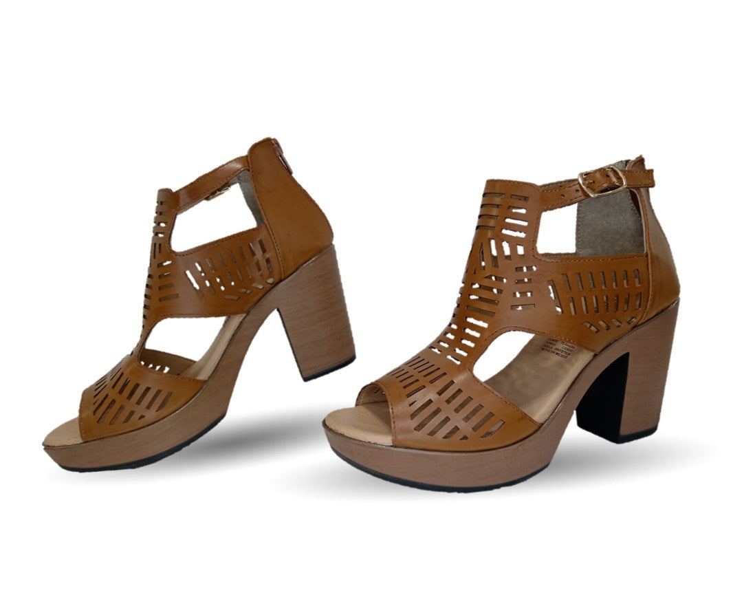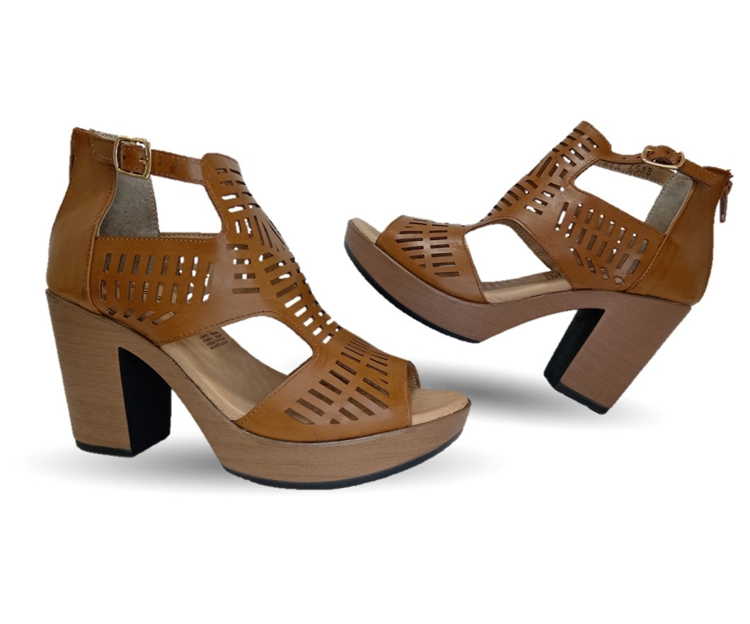 Sandalia Casual de piel de ternera con tacón alto Pullman 6508 Topo para mujer