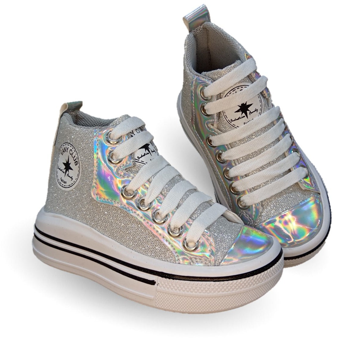 Tenis tipo Bota con agujetas Vany 6010 Plata para niña