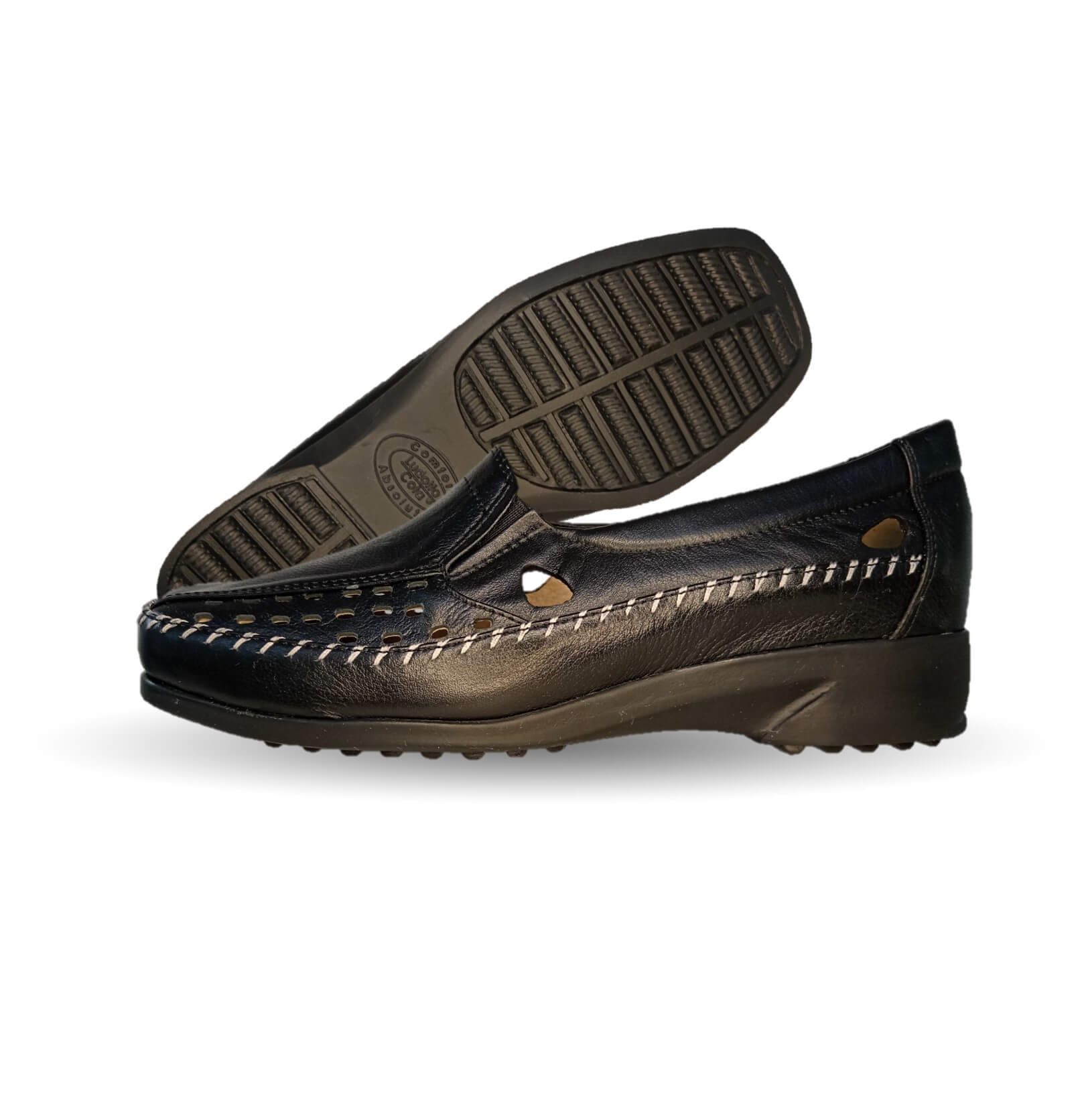Zapato de Confort y Casual abierto de piel de ternera con Shock Point Capricho 15020 Negro para mujer