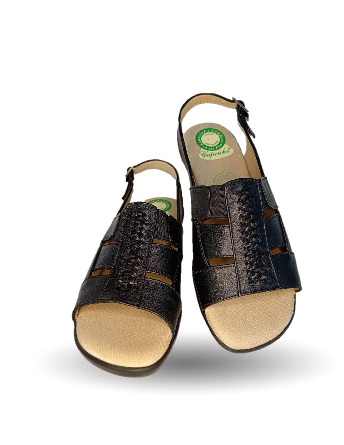 Sandalia de Confort de piel de ternera con Shock Point Capricho 16273 Negro para mujer