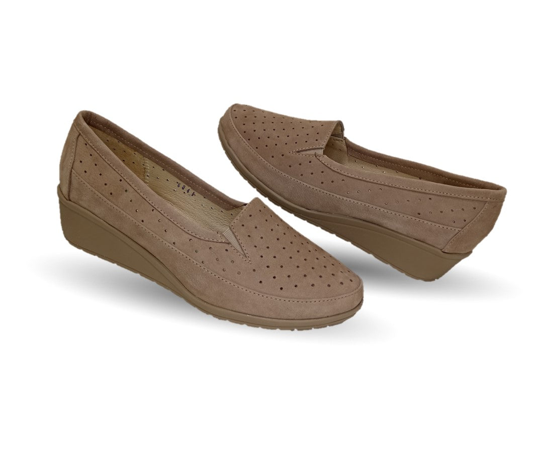 Zapato de Confort y Casual de piel de ternera con Shock Point Capricho 6041 Nobuck Nuez para mujer