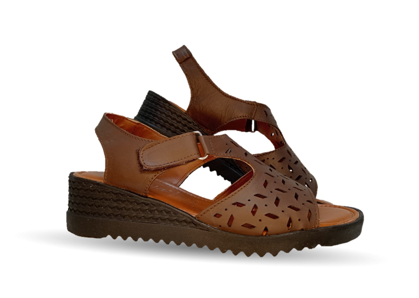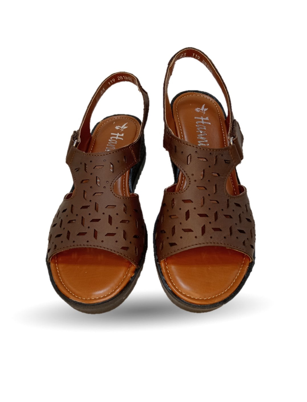 Sandalia de piel con cuña baja Hannia 119 Café para mujer