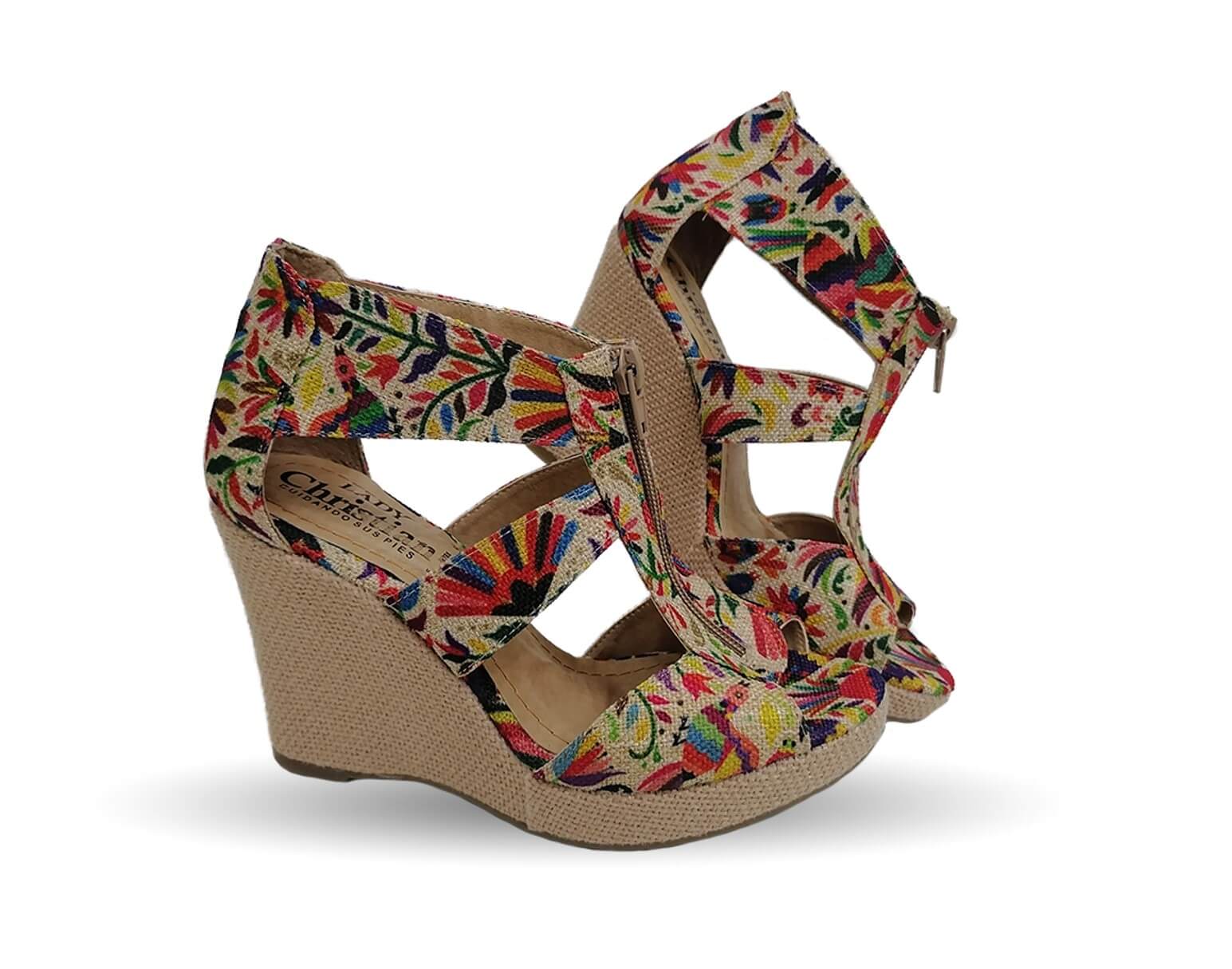 Especificaciones: Sandalia Casual con yute natural, temática Otomí. Suela de cuña alta. Cierre frontal para mejor ajuste.