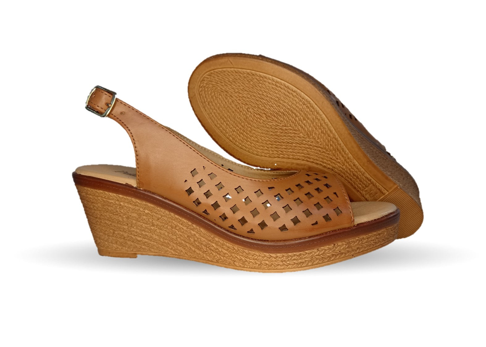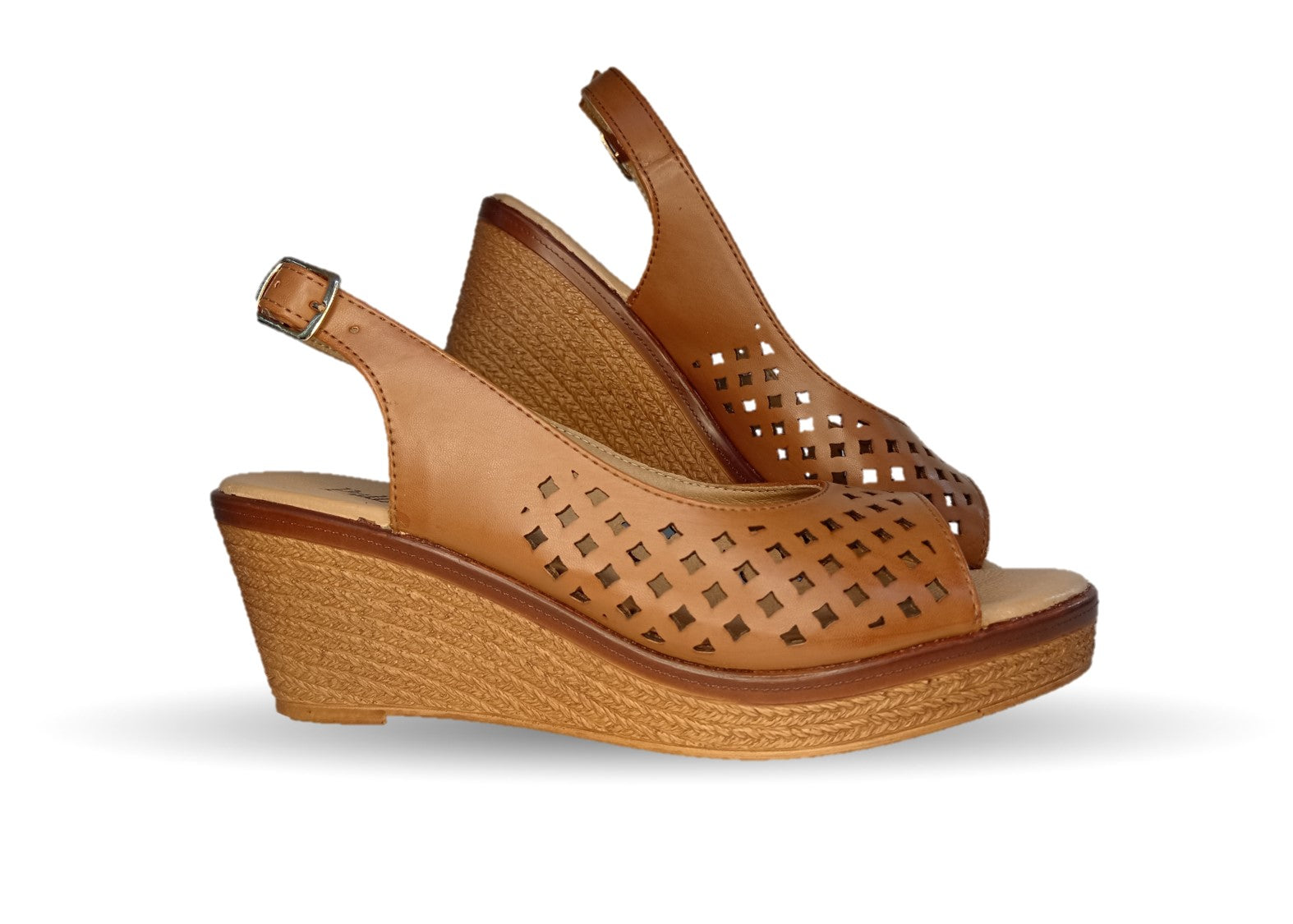Sandalia Casual de piel de ternera con cuña mediana Pullman 3 Adobe para mujer