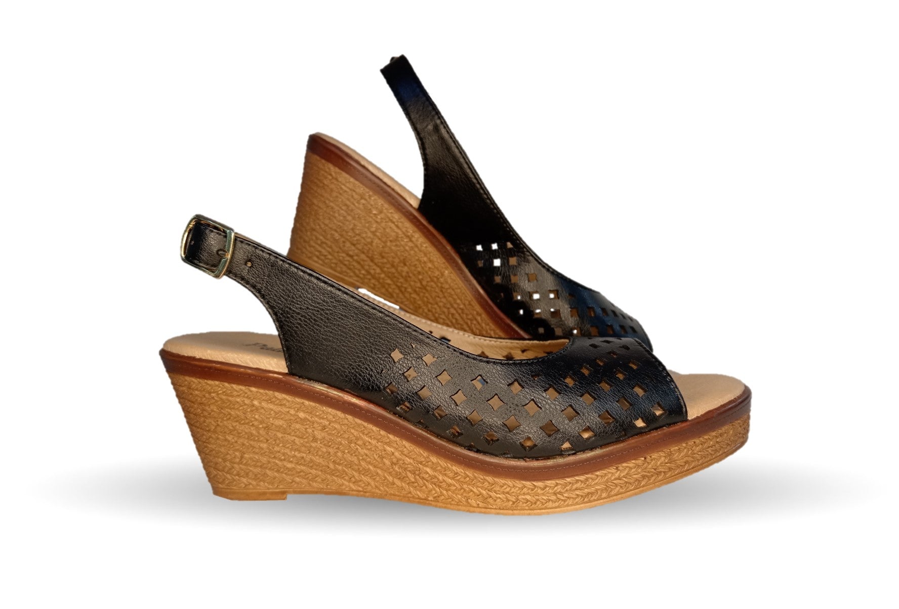 Sandalia Casual de piel de ternera con cuña mediana Pullman 3 Negro para mujer