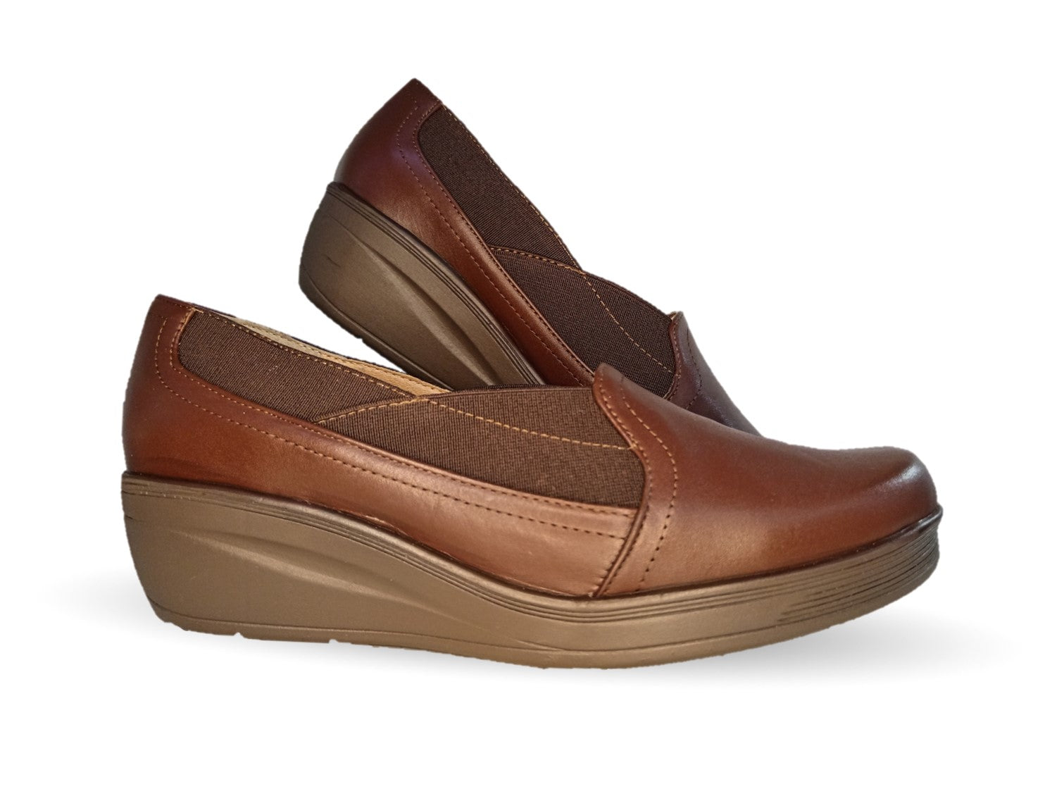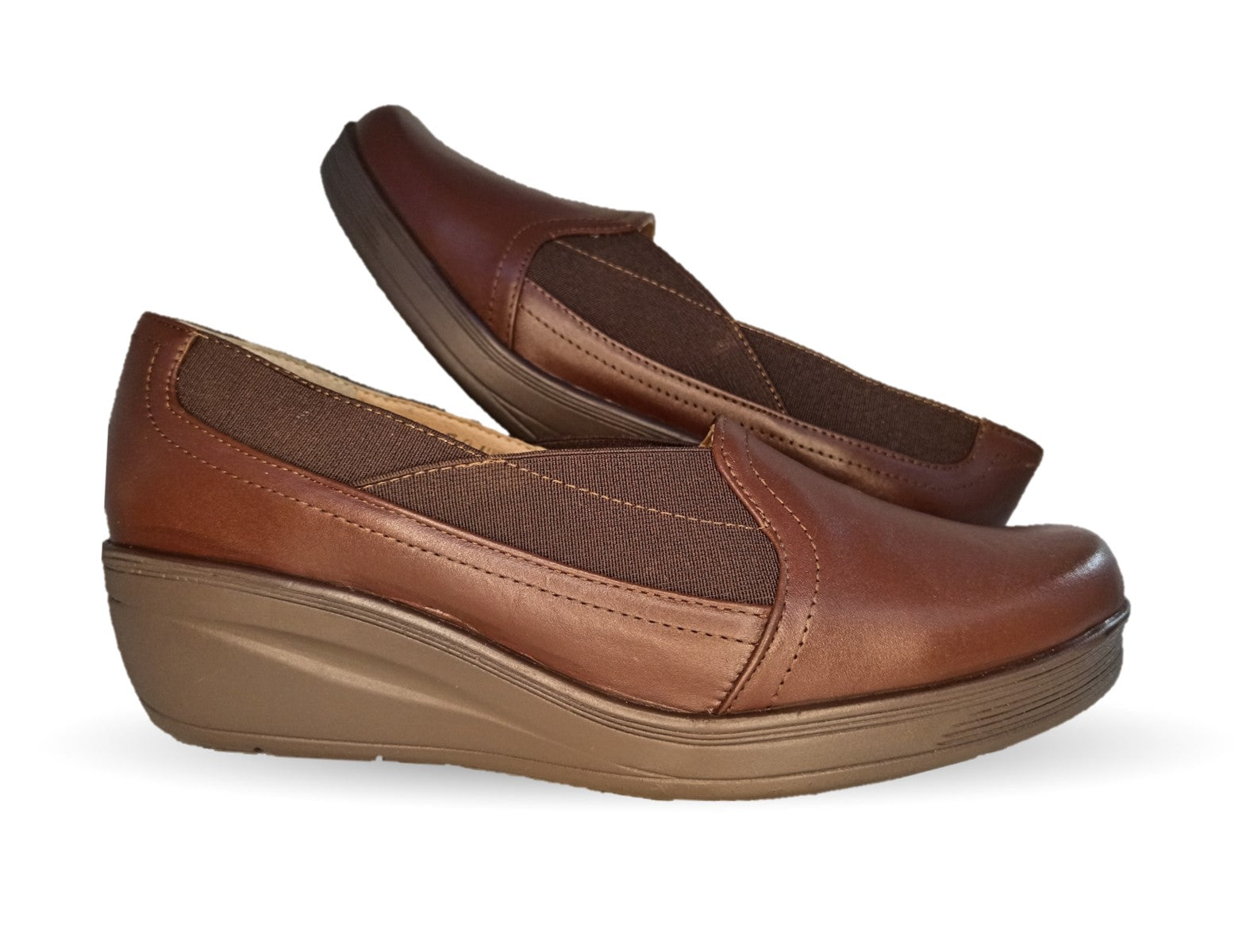 Zapato de Confort y Casual de piel de ternera con suela extra ligera Pullman 721 Roble para mujer