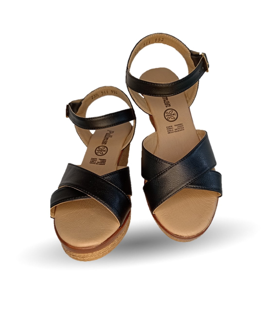 Sandalia de Confort y Casual de piel de ternera con cuña mediana Pullman 952 Negro para mujer