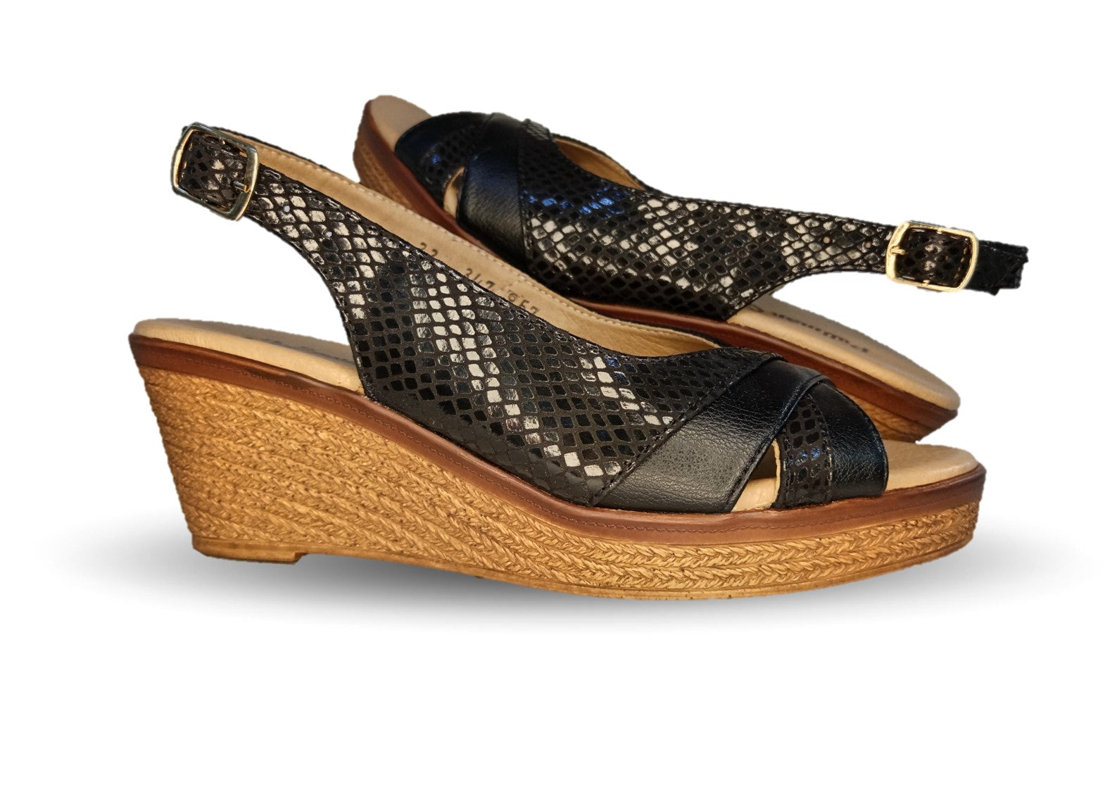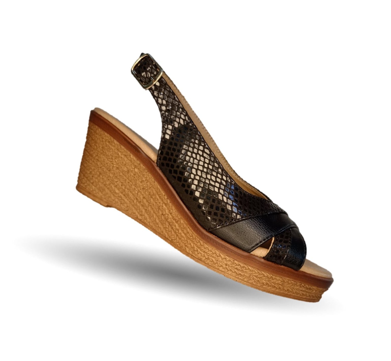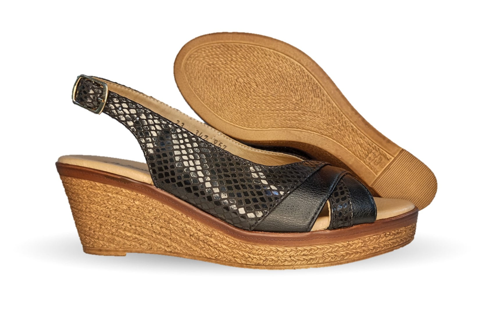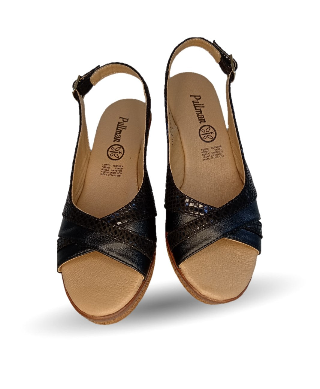 Sandalia de Confort y Casual de piel de ternera con cuña mediana Pullman 957 Negro para mujer