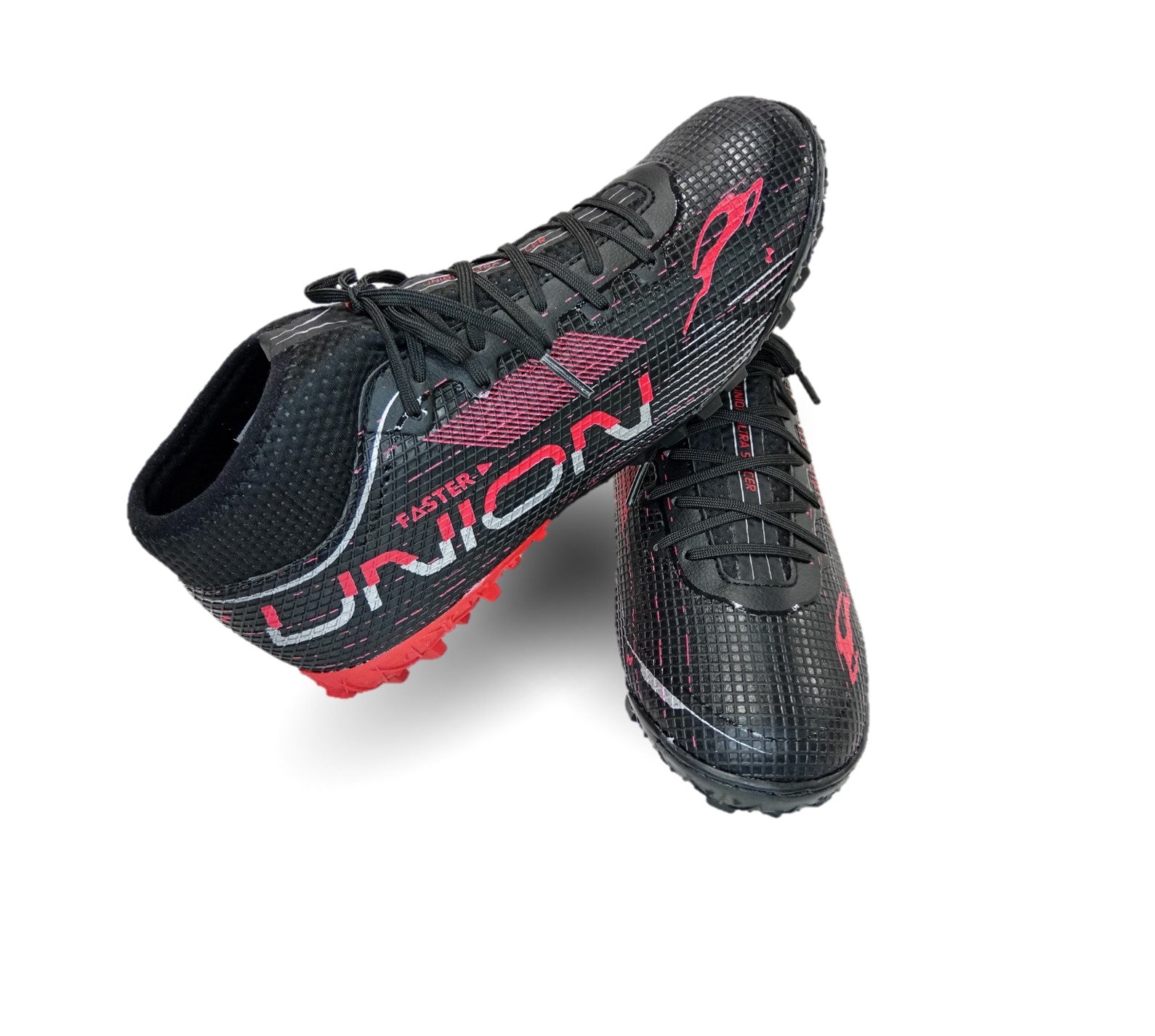 Tenis de Futbol tipo Calcetín con multitacos Union 2070 Negro/Rojo/Plata para hombre